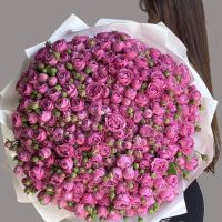 Композиция из 101 кустовой пионовидной розы "Мисти Бэблз" — это завораживающее цветочное великолепие, которое сочетает в себе элегантность и нежность. Эти крупные, пышные соцветия с мягкими, пушистыми лепестками в оттенках малинового цвета.Букет из 101 розы создаёт ощущение роскоши и безупречного стиля, напоминая о искренних чувствах и праздничных моментах. Идеальный выбор для того, чтобы сделать особый день незабываемым или выразить безграничную любовь и признательность.
