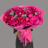 Изысканный букет из 11 малиновых роз — выбор тех, кто ценит сдержанную роскошь. Крупные бутоны с бархатистыми лепестками создают эффектный акцент, а их глубокий оттенок придаёт композиции статусность