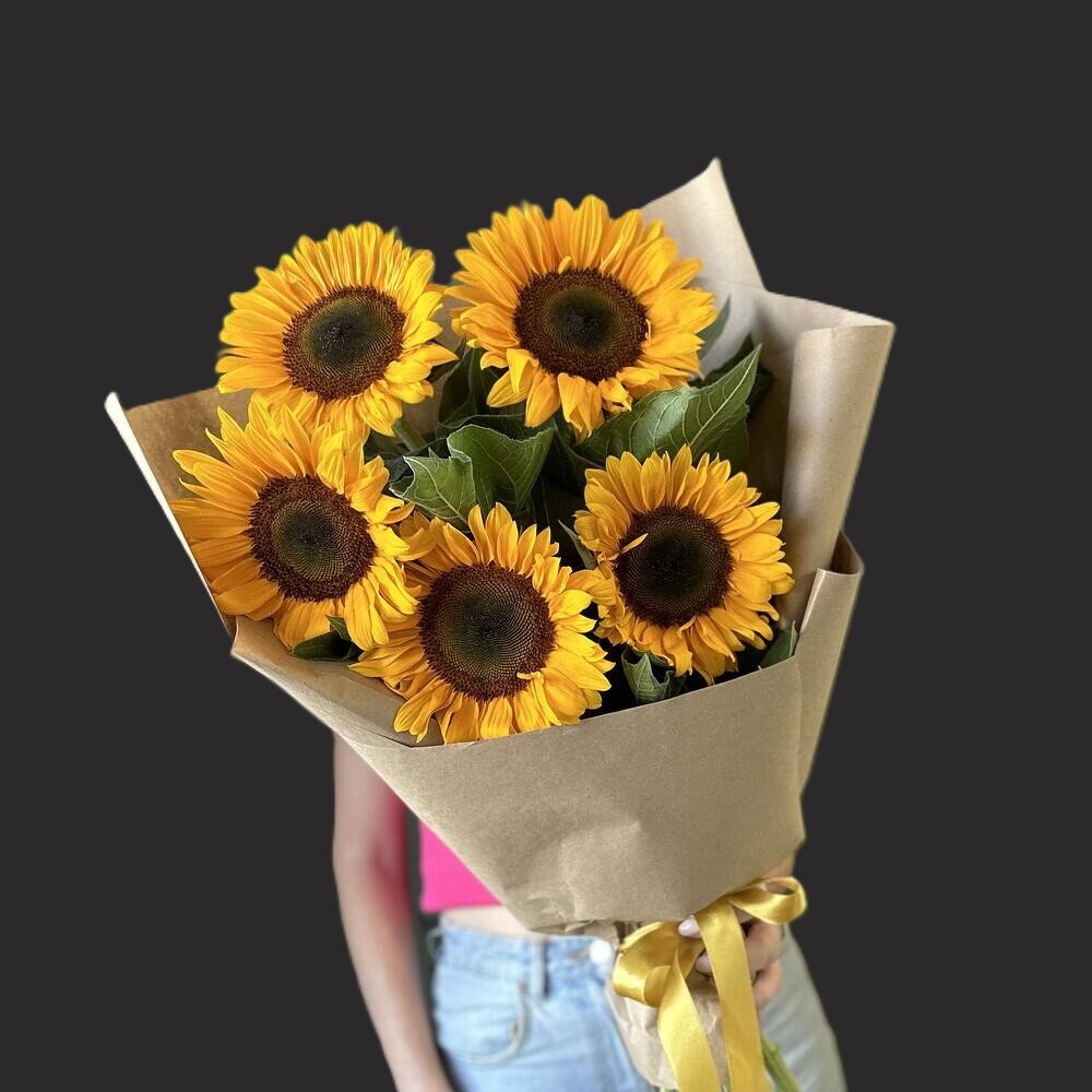 Букет "Солнечный" из 5 подсолнухов — это яркая и жизнерадостная композиция, которая наполняет окружающее пространство теплом и солнечным настроением. Каждый подсолнух символизирует радость, оптимизм и светлое настроение. Этот букет идеально подойдет для поднятия настроения, поздравления или чтобы подарить частичку солнца в любой день.