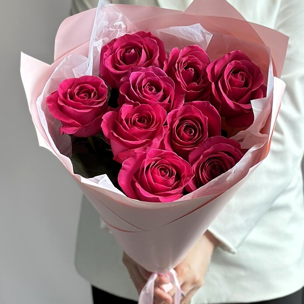 "Этот яркий букет из 9 малиновых эквадорских роз — символ страсти, энергии и искренних чувств. Богатый насыщенный оттенок придает композиции особую выразительность и шарм. Идеальный подарок для тех, кто хочет подчеркнуть свои чувства и сделать особый момент незабываемым."