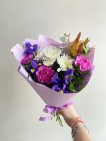 Букет "Миг" — это яркая и эмоциональная композиция, которая сочетает в себе цветы, наполненные обаянием и жизненной энергией. Основу букета составляют стильные хризантемы, символизирующие радость, а их яркие цвета гармонично дополняют изысканные ирисы, олицетворяющие надежду и вдохновение. Нежные розы добавляют романтики и изящества, в то время как освежающий эвкалипт придает букету нотки зелени и легкости, создавая атмосферу непринужденности. Каждый элемент в букете "Миг" находит свое идеальное место, формируя композицию, способную украсить любое событие.