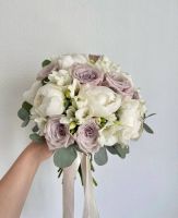 Букет Невесты с Белыми Пионами и розой Мента