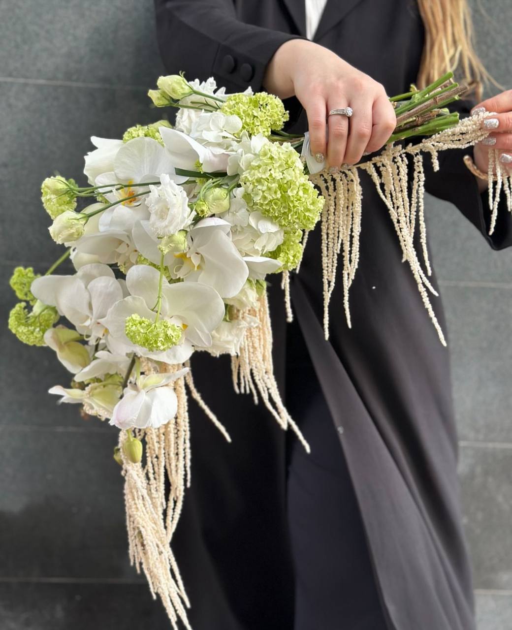 Букет невесты с орхидеями, амарантом и вибурнумом — это воплощение элегантности и живописной красоты. Орхидеи, символизирующие любовь и роскошь, добавляют экзотическое очарование, в то время как амарант вносит страсть и энергию. Вибурнум, с его зелеными шарами, придает букету уникальную текстуру и объем. Этот букет не просто аксессуар, а яркое выражение чувств и эмоций, которое будет радовать взгляд и душу в течение всего свадебного дня.