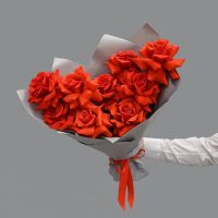Роскошный букет из изысканных красных французских роз – воплощение страсти и элегантности. Особая форма лепестков, вывернутая наружу, создает неповторимый объем и драматизм композиции. Их бархатные бутоны, словно раскрытые ладони, дарят окружающим всю свою красоту и очарование.