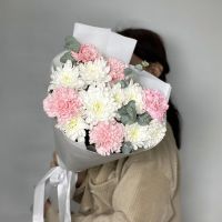 Этот утонченный букет "Софи" из кустовых хризантем и гвоздик — символ нежности и изящества. Мягкие хризантемы создают объем и уют, а изящные гвоздики добавляют нотки романтики и элегантности. Идеальный подарок для выражения искренних чувств, поздравлений или украшения особого события. Этот букет наполнит ваше пространство теплом и красотой, создавая атмосферу гармонии и радости.
