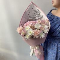 Изысканная гармония форм и оттенков. В этом букете сочетаются великолепие гортензии, изящество кустовой хризантемы и утонченность альстромерии. Он излучает элегантность и стиль, подчеркивая ваш безупречный вкус. Идеальный подарок для особых случаев и значимых событий