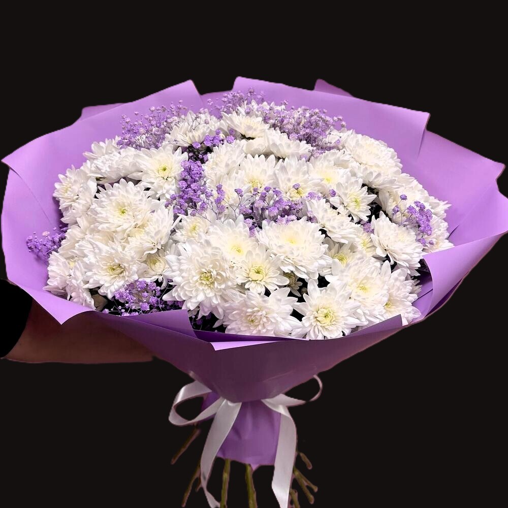 Букет с хризантемой и гипсофилой "Первые чувства"