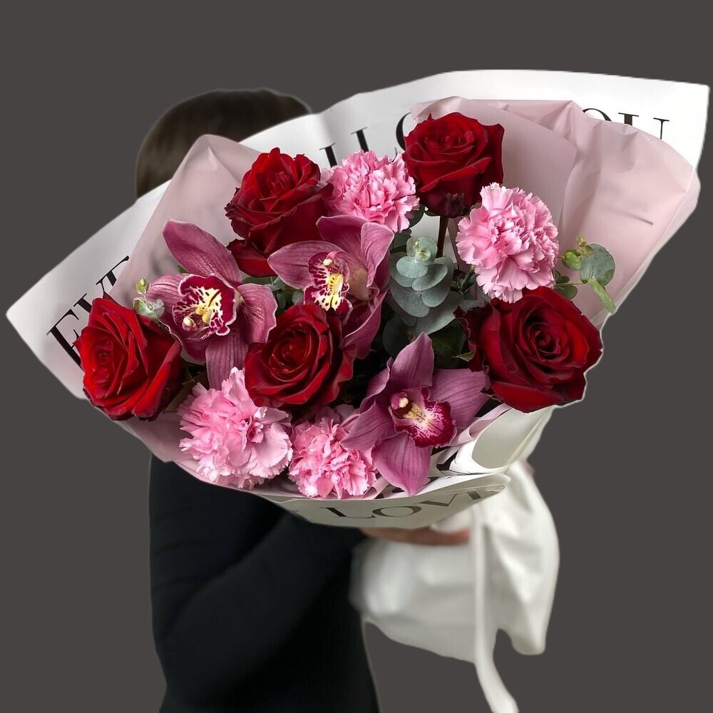 "Этот элегантный букет с красной розой и орхидеей под названием 'Летний вечер' — символ страсти, утонченности и романтики. Богатство насыщенных оттенков и изысканная комбинация создают атмосферу тепла и волшебства, идеально подходящую для особых моментов