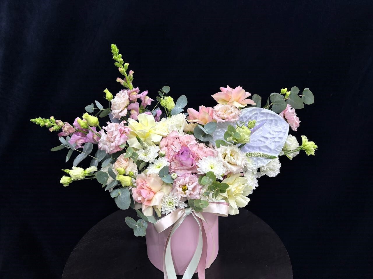 Изысканная цветочная композиция «Зефир» — это воплощение утончённой красоты и элегантности. Словно невесомый десерт, букет очаровывает своей нежностью и грацией.